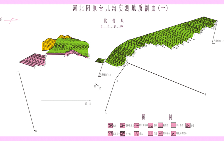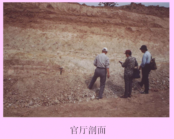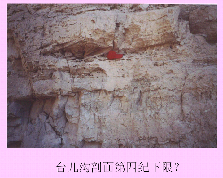 选定了台儿沟剖面作为泥河湾阶的建阶剖面台儿沟剖面位于泥河湾古湖靠东的中心部位,在著名的郝家台南侧,厚120余米。地层连续性较好,能见到第四纪底界,内含丰富的生物化石,适合古地磁等其它测试工作,是泥河泥盆地最具代表性的剖面其中第四纪与第三纪岩石地层界线的确定,是本次野外工作中新的发现和认识,但今后尚需得到年代地层和生物地层进一步证实。